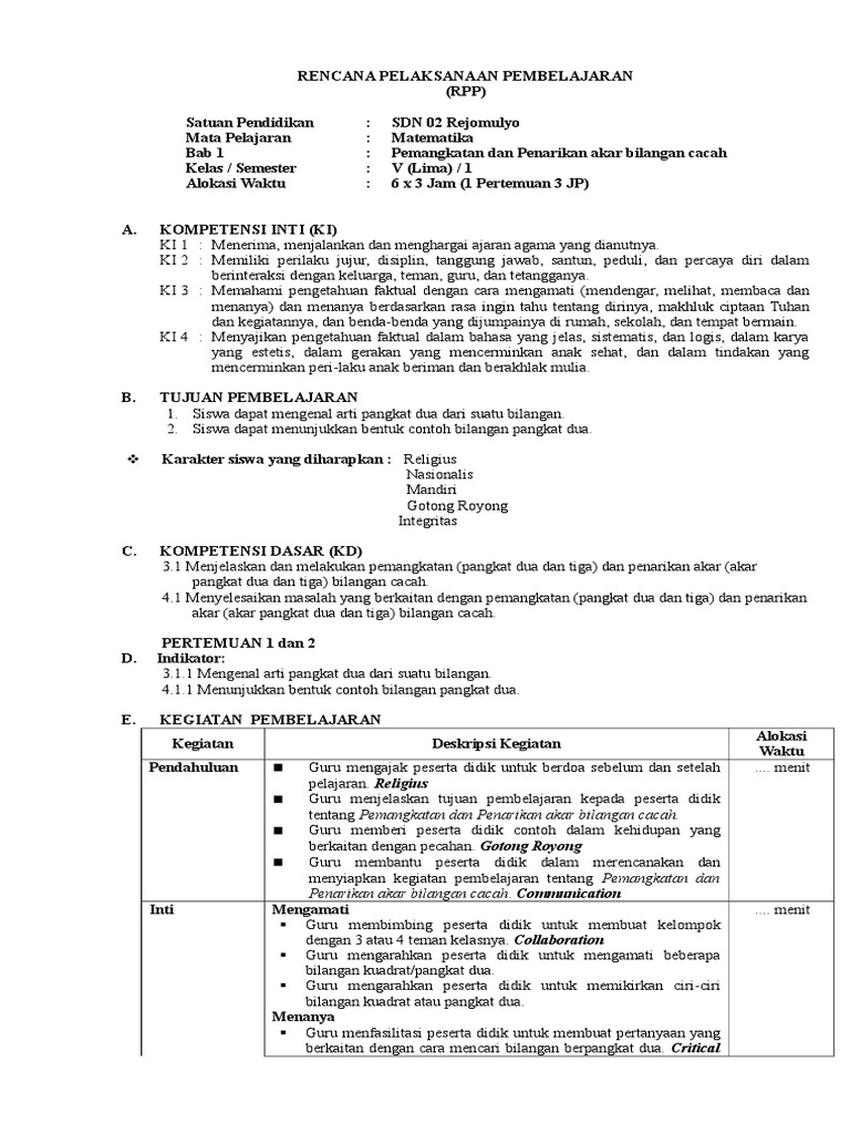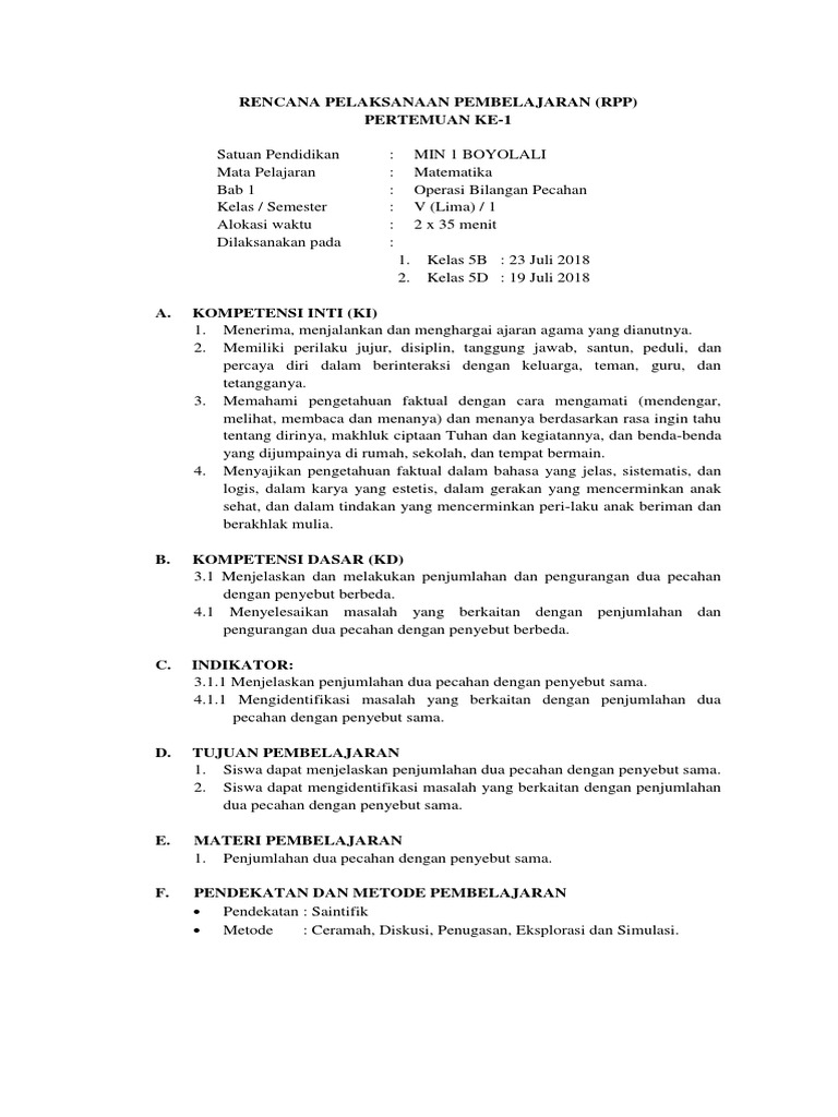 Rpp matematika kelas 5 sd/mi kurikulum 2013 revisi 2018 ini, telah disesuaikan dengan permendikbud no 22 tahun 2016. Pada rpp ini, dilengkapi pembagian kolom untuk membedakan pembelajaran yang dapat dilakukan oleh semua siswa. Berikut rpp matematika kelas 5 yang disesuaikan dengan kurikulum terbaru. Rpp merupakan berkas rencana kegiatan pembelajaran tatap muka yang harus diisi guru sebelum memulai kelas. Rpp 1 lembar mtk kelas 4 k13 revisi 2020. 2017, mari belajar matematika untuk kelas v sd/mi, jawa tengah: Sahabat guru kali ini kami akan berbagi rpp matematika kelas 5 semester 2 kurikulum 2013 revisi dalam bentuk soft file untuk mempermudah sahabat guru terutama guru kelas 5 sd dalam membuat rpp matematika dan sebagai referensi pada posting ini kami bagikan rpp kelas 5 kurikulum 2013. Demikian rpp matematika kelas 5 jenjang sd/mi format 1 lembar/halaman kurikulum 2013 edisi terbaru yang. (4) mengasosiasi, dan (5) mengkomunikasikan. Rpp k13 matematika sd kelas 5 semester 1 dan 2 revisi terbaru ini sangat dibutuhkan oleh seorang guru agar pada saat mengajar guru sudah memiliki download: Rpp matematika kelas 5 sd. Dengan bergerak ke depan kelas, siswa dapat melatih ekspresi sopan menggunakan kata. Haloprofesi.com haloprofesi.com_ pada artikel berikut ini, admin akan membagikan file rpp (rencana pelaksanaan pembelaj.